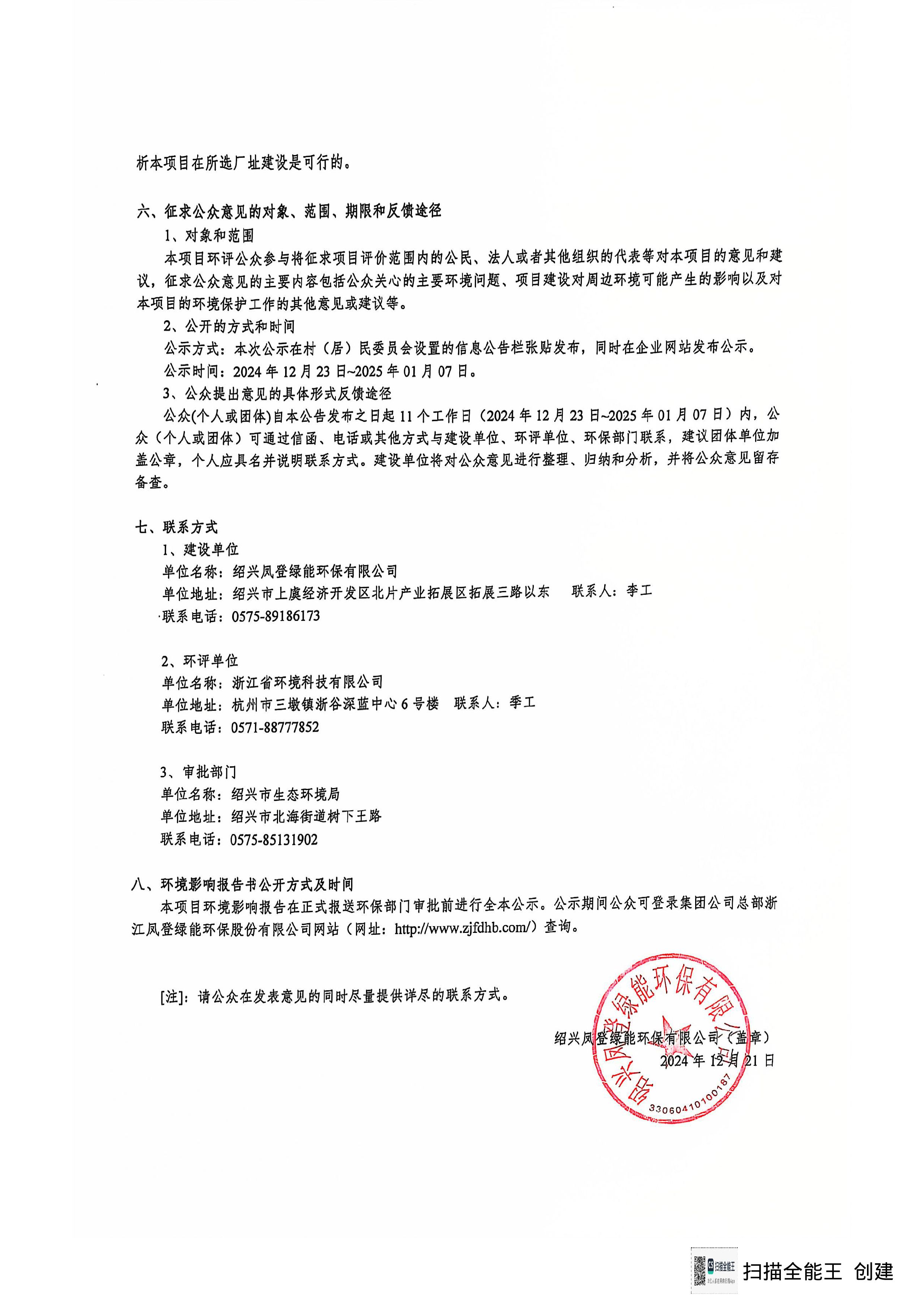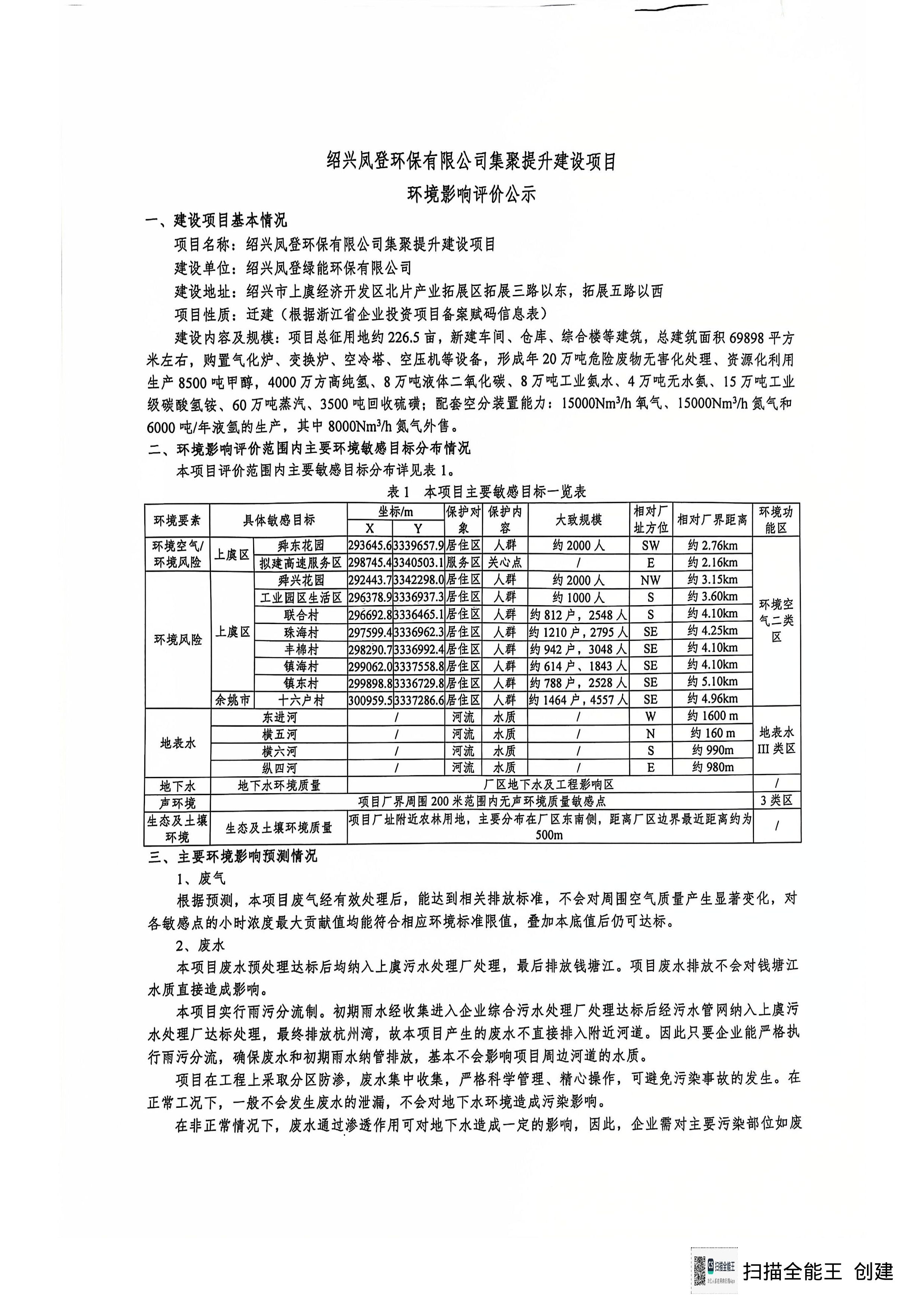 紹興鳳登環保有限公司集聚提升建設項目環境影響評價公示